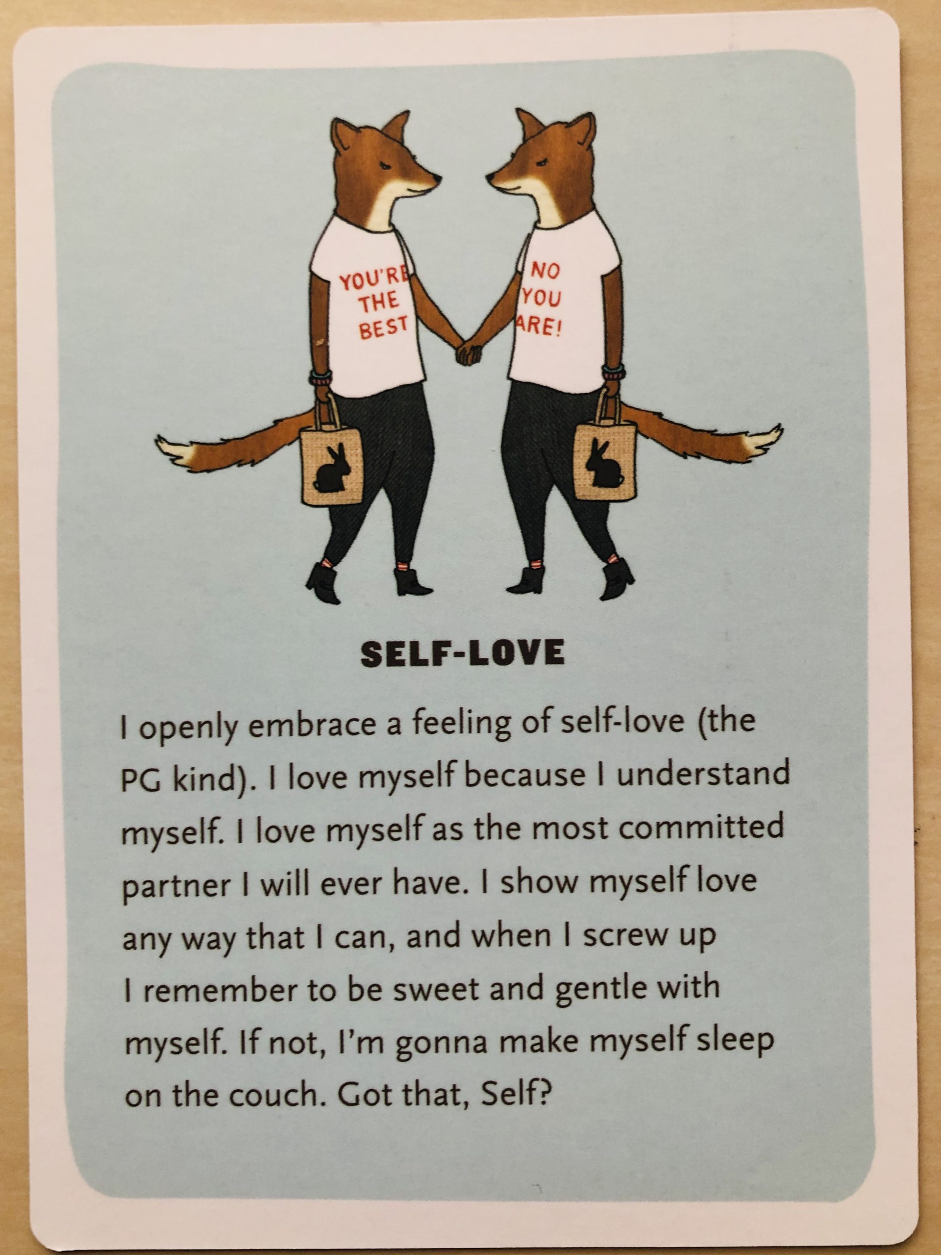 Well, I found these affirmations, called “Affirmators” – they are DOPE! It’s not a full online course on discovering, accepting, and loving yourself BUT, they are fun talking points, and mostly chuckle-provoking, for around the dinner table or whenever (yes, we actually have family dinners now that we’re all stuck at home with each other…..sshhhhh…. I LOVE having my teenagers home for dinner! Hate COVID-19, love that my teens are stuck with me).